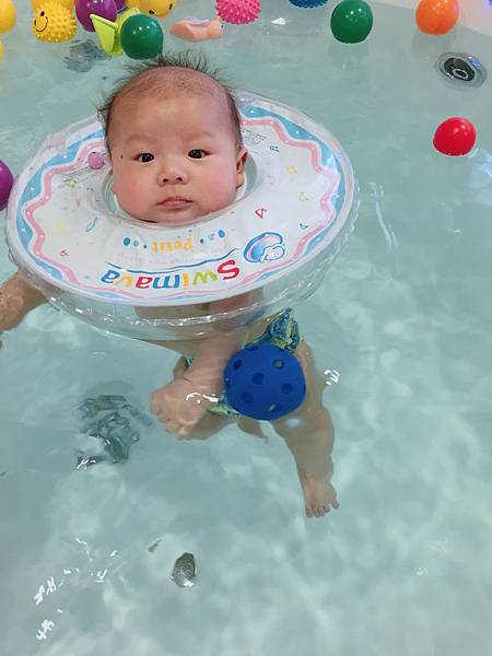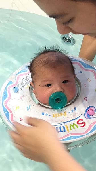 剛開始小卡特有點緊張,親水師說這時候我們可以先讓他吃奶嘴,安撫一下寶寶的情緒,也比較有安全感,等到他熟悉了之後,就可以自己玩囉!!