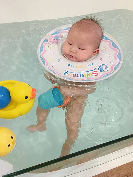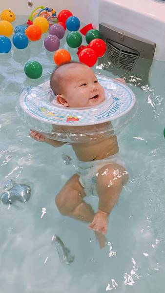 聽說寶寶在媽媽的肚子裡,就開始練習如何變換肢體動作,出生之後,在水中就像待在媽媽的羊水裡,既舒適又熟悉呢!