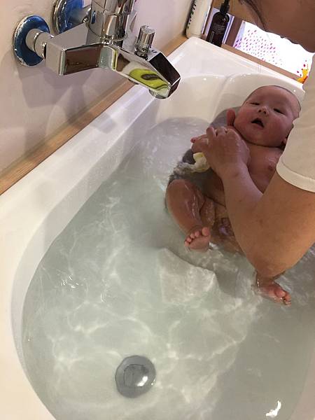游泳過程大約10-30分鐘,寶寶的體力也消耗得差不多了,這時候就可以把他抱起來洗澡啦!這部分是由爸媽協助唷