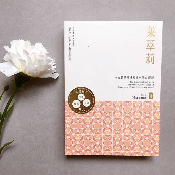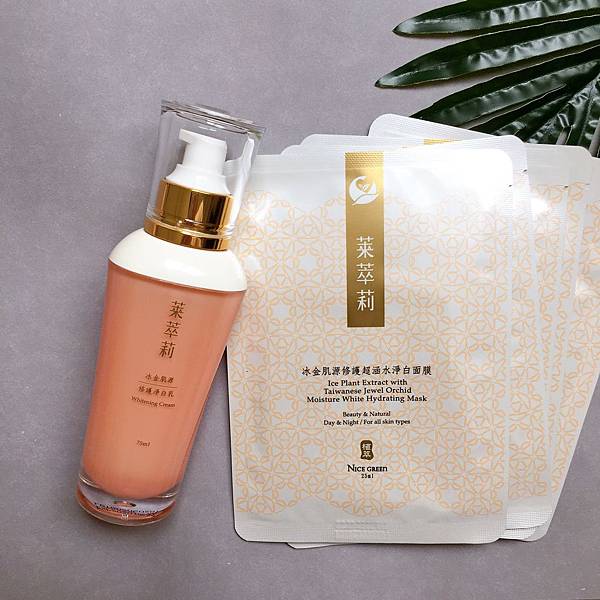 這次艾蜜莉要分享兩個最近入手覺得很棒的好物,就是NICE GREEn萊萃莉的「冰金肌源超涵水淨白面膜」和「冰金肌源修護淨白乳」。