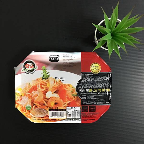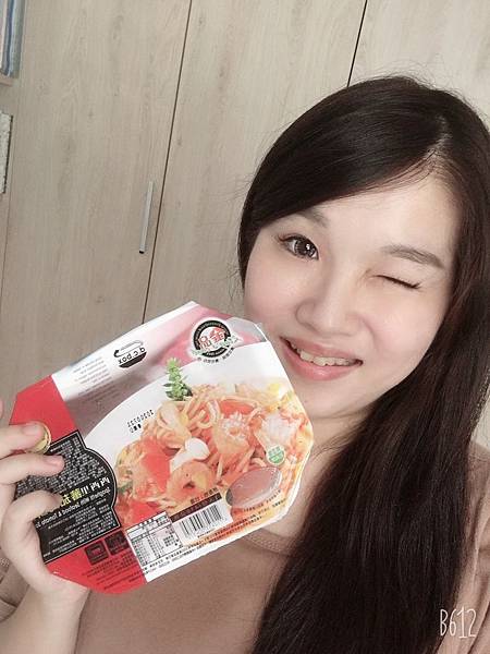 本來對微波食品的印象都是裡面沒什麼料,沒想到裡面居然有一大塊鯛魚肉,還有滿滿的番茄、野菇,蝦子也有好幾隻。義大利麵原有的小麥香氣,佐上由番茄、洋蔥、起司調成的醬汁,鹹鹹酸酸的很開胃,兩者中和的剛剛好,是一道不會讓人吃膩的料理說著說著,艾蜜莉也默默地掃完一整盤啊!(完全沒在擔心體重XD)