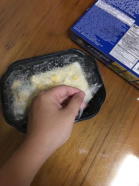 老規矩,撕開封膜一角,大火微波3分15秒即可