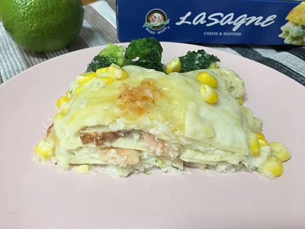 出爐的千層麵真是太令我驚豔了!義式寬麵與蒜香乳酪一層一層疊上去,裡面還塞滿了玉米、蝦仁、竹崙、青花菜、洋蔥等配料,一口吃下去層次豐富,乳酪的香氣四溢,超級享受啊!